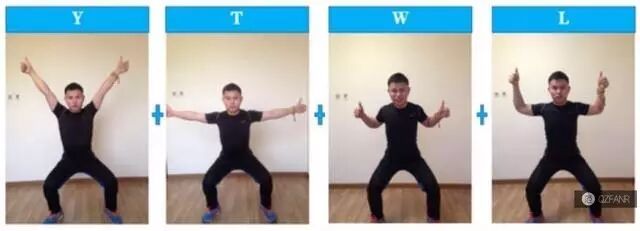 按照YTWL的方法进行姿态训练,W型姿势在纠正含胸问题上已经提到过啦,宝宝们可以像下图一样,按照Y-T-W-L的顺序3组,每组做10次。注意大拇指朝上,上背挺直,感受对肩胛骨的挤压。