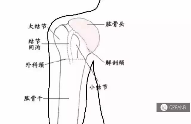 肱骨头是大臂连接肩膀的半圆形部分(用粉色标明),这块骨头向内旋转的角度反映了一个人含胸的程度。怎么测试呢?