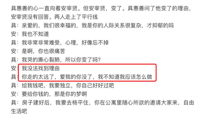 “具惠善如果碰到合适的人,也可以被容纳、适当满足并转化。 但如果对方不是这样的人,好合好散最好,继续闹也没用。 做不到容纳具这些特点的人,要早点转身,而且别干蠢事,即真认为自己大错特错,而且任由对方剥削。”