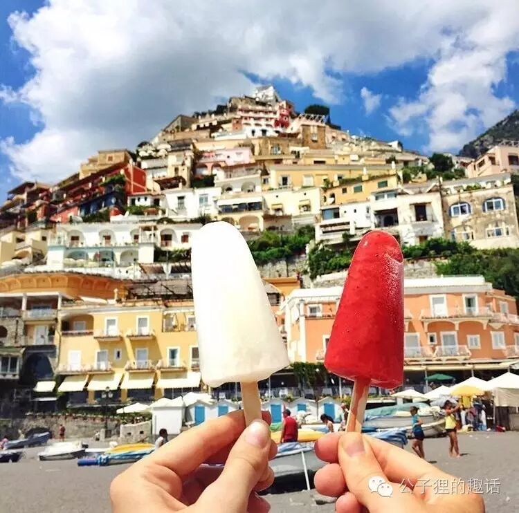把当地特色食物作为主角放在镜头前方,背后带上当地美景。满足了食欲又显示了情趣。
