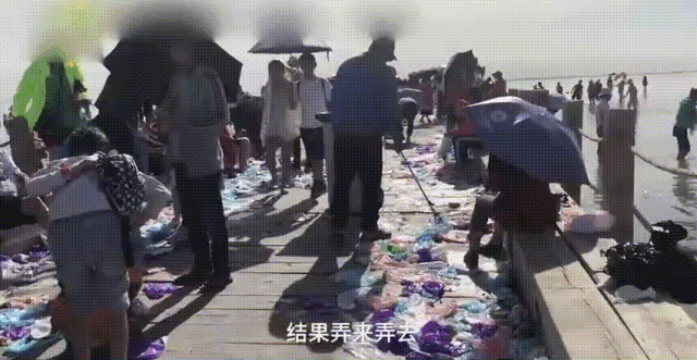 一些不法商贩兜售一次性塑料鞋套,有些游客买了鞋套不仅违规穿着它下湖,甚至将它们随意丢弃在景区里。