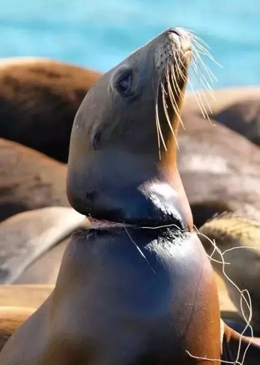 这是一只海狮,一只脖子已经被勒得血肉模糊,眼睛里写满无助和绝望的海狮,罪魁祸首是一根塑料线。