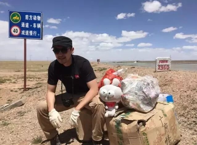 直到近照曝光,大家才知道他去了青海,沿着青藏线,一路捡拾垃圾。