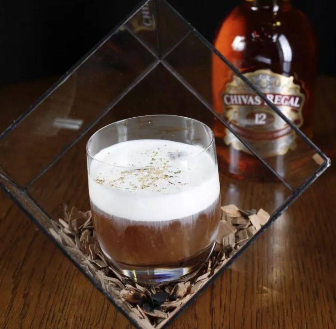 来自西安的The Cirque,曾为2017年芝华士鸡尾酒大赛亚军,今年再度征战。入围作品之一:芝华士奶盖黑糖姜母茶。