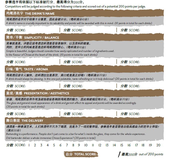 评委手中有一张“官方计分表”,总分200分。我们也了解一下。↓