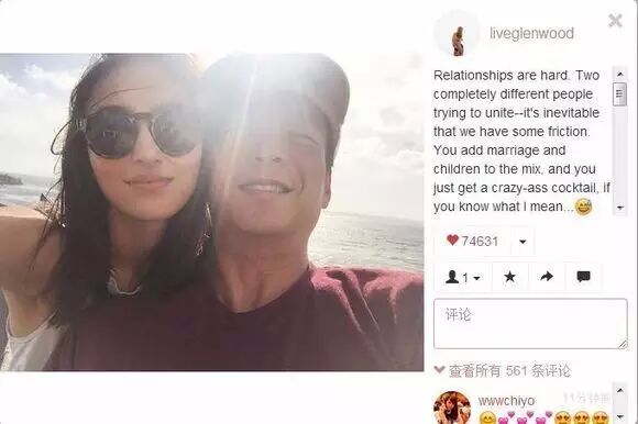 在自己的ins上,她常有感而发写一些有关家庭和爱人的句子顺便秀一下恩爱,图中这则ins她写道: