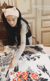 鉴于之前微博晒画一直被说是代笔,她还开直播画画,对,在法国参加时装周的时候画的——