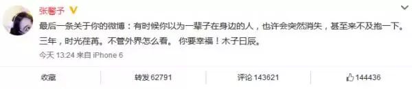 但张馨予绝对不是等闲之辈,就算每天被黑得体无完肤,她还是坚持自己发微博,除了仍然被吃瓜群众津津乐道的“木子曰辰”——当然啦,这条掀起轩然大波的微博已经被删掉了。