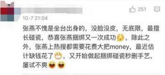 学姐可以告诉你们,虽然“燕儿翩翩飞,黑粉永相随”这种话张馨予也是有读出来的,但这些不愧是工作人员精心挑选的评论,读完了觉得微博网友的战斗力连5都不到,一群渣渣。