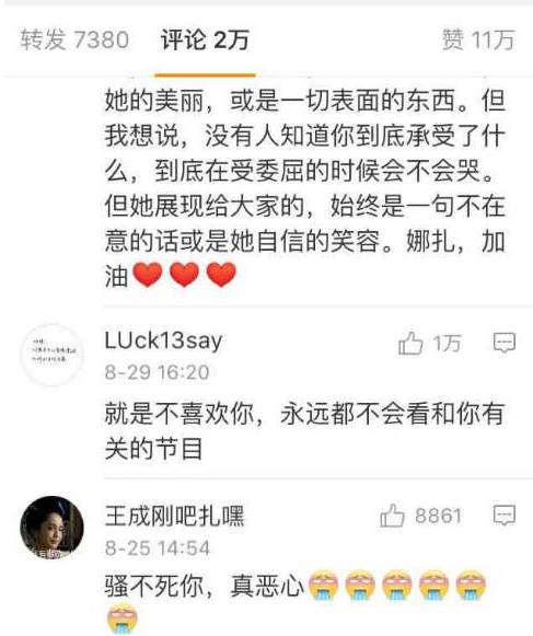 之前娜扎评论区一直被黑粉攻陷,看得路人都心疼。