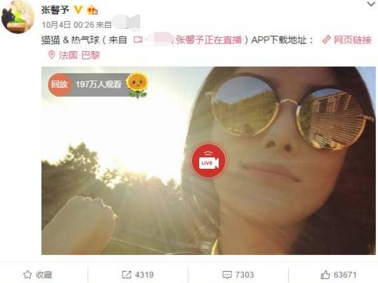 参加巴黎时装周的张馨予,自然也要跟大家分享兴奋的心情啦,那几天直播了好几次,还标注了地点在法国·巴黎——