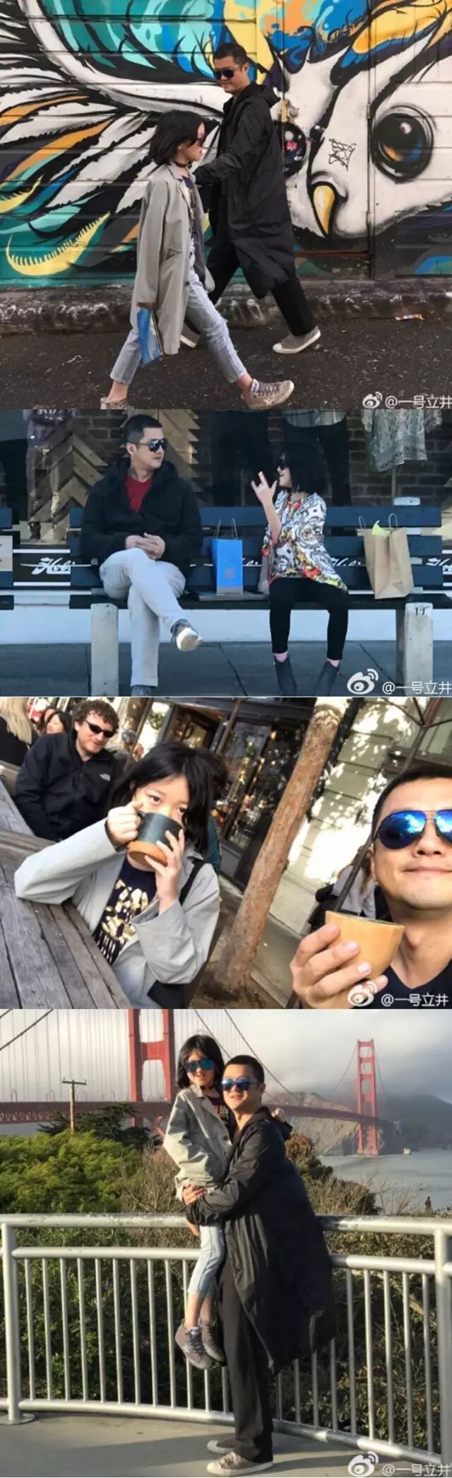 2月13日,李亚鹏微博晒出一组携女儿李嫣逛旧金山照片,称“路遇一小妞儿 一路跟随 结伴而行 请她喝了一杯咖啡 终于情定旧金山”,照片中李嫣披长发举止潇洒,父女两人街头范十足,非常有爱。