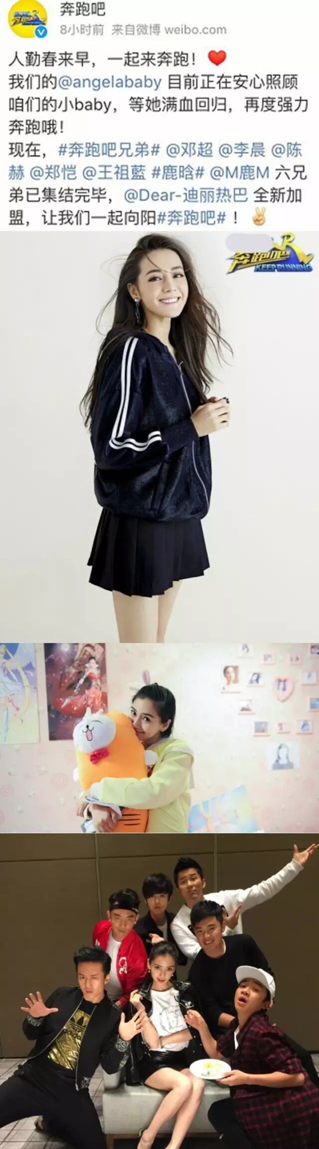 近日,《奔跑吧兄弟》第五季改名《奔跑吧》,奔跑吧节目官微也正式宣布迪丽热巴的加盟。另外,官微表示Angelababy只是暂时退出。随后baby也转发该微博回应道,“不变的是陪伴大家一路奔跑的心,欢迎热巴。这次你们先跑,等我归队”。