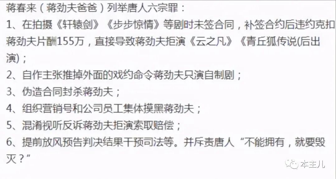 而唐人则拿出大量证据指责蒋劲夫没有契约精神,