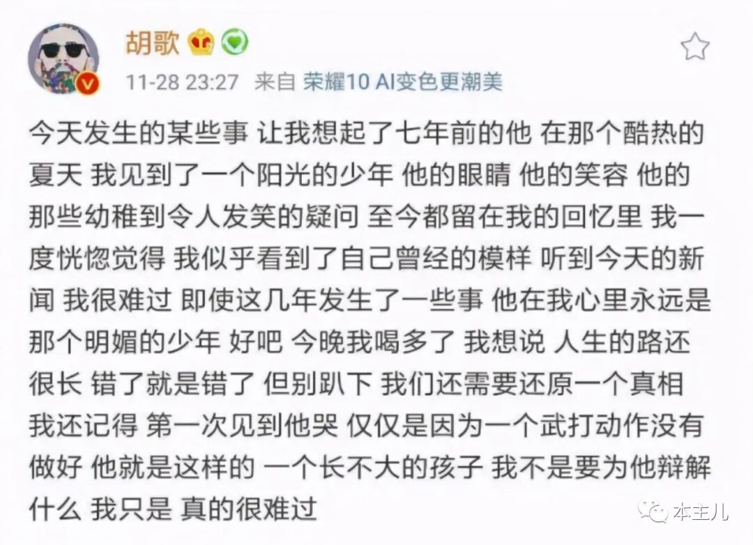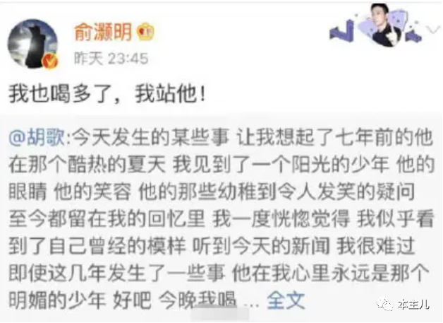 胡歌半夜醉酒后怀念七年前初见蒋劲夫时的美好,