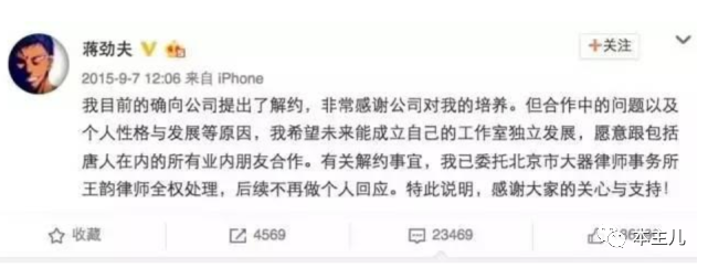 不久之后蒋劲夫也效仿前辈提出了解约,