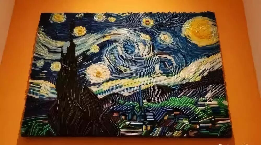 (用吸管制作了一幅偶像梵高的《星空》)。