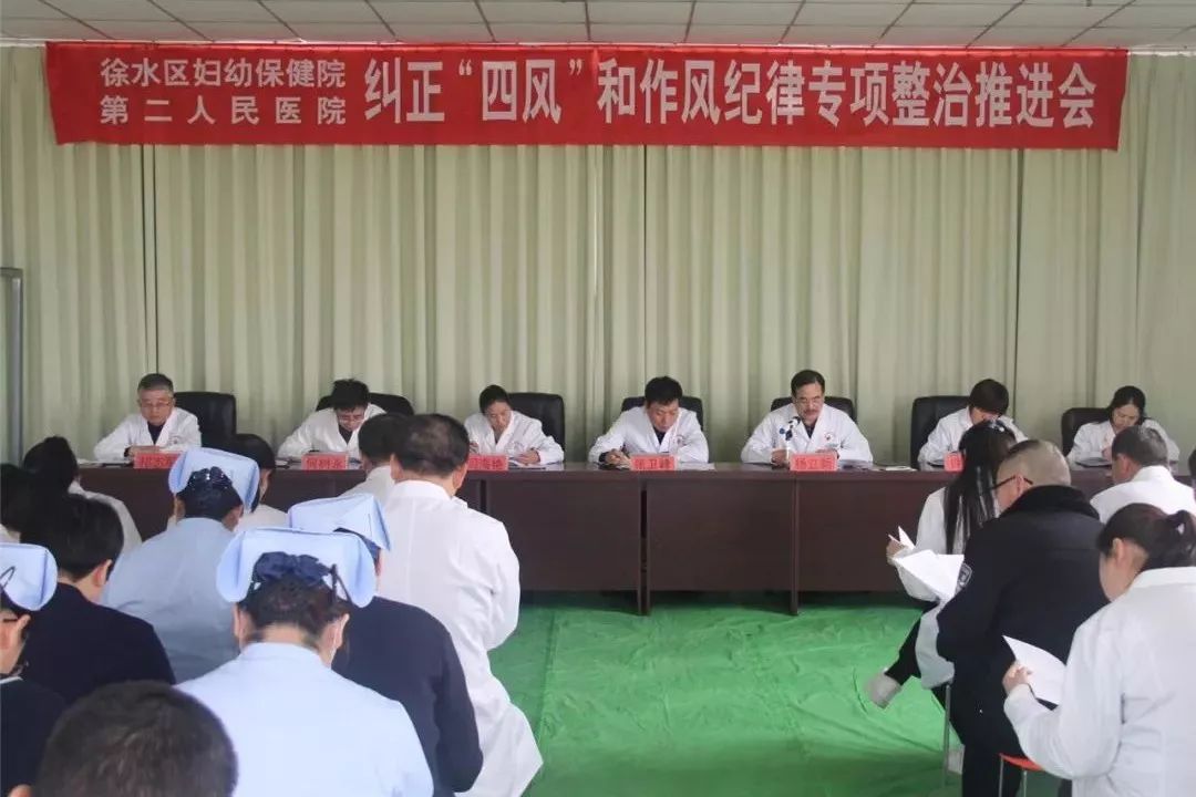 杨立新书记宣读了《徐水区妇幼保健院/第二人民医院纠正“四风”和作风纪律专项整治推进方案》,要求大家要强化领导意识、责任意识,要把会议的精神层层传达,教育职工重大局、讲规矩,全院上下要统一思想、端正认识、自查自纠,切实保证专项整治活动取得成效。