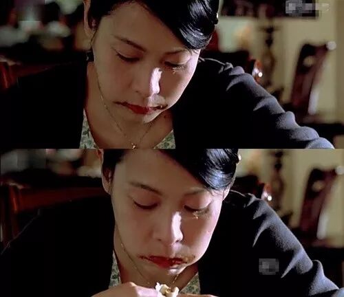 电影里女贼王丽(刘若英饰)强压悲伤,面无表情,一口接一口的的吃着北京烤鸭,狼吞虎咽,没有痛哭,只有一滴眼泪从眼眶滴落。