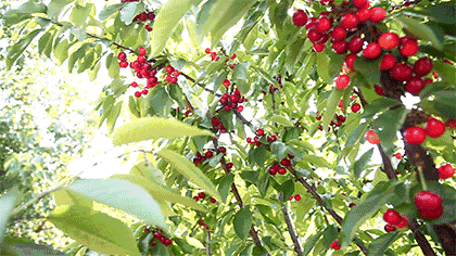 原本有7天的,但今年气温突然变暖,樱桃在树上很快就熟透了,期限就变短了。