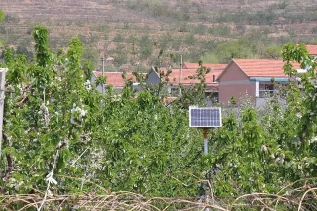 ▲不打农药,那有虫怎么办?别担心,果园安装了太阳能驱虫设备,不会对樱桃造成影响。