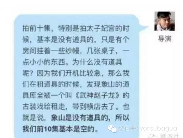 所以,虽然太子妃的导演吐槽过没有道具,但是也说的是象山的道具是被赵子龙“租”走的,时间差这么长,不存在“抢”啦,只是先来后到问题。