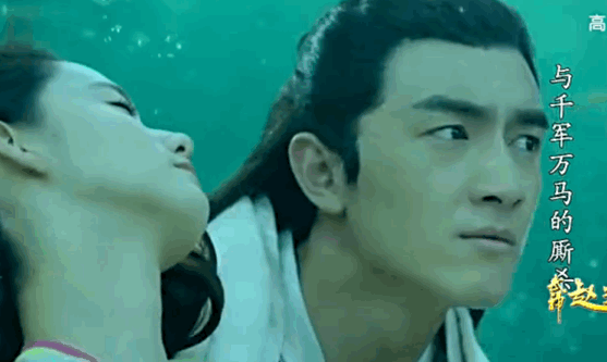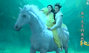 林更新饰演的赵子龙带着女主角林允儿坐在白马上,一跃沉入湖底