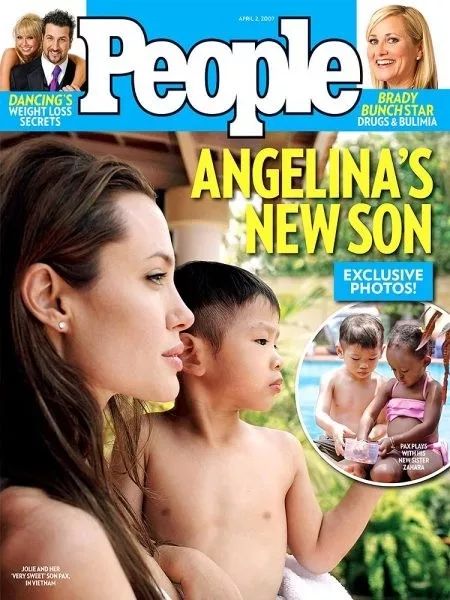 07年,朱莉和皮特从越南领养了儿子Pax ,《人物》周刊花了200万美元买下照片。