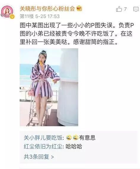 大概是被网友笑惨了,关晓彤自己都觉得很好笑,马上把这张照片单独拎出来,给网友说是p图的时候手抖,就p成了这样,还要补一张美照给粉丝们,场面真是一度十分尴尬呐,估计修图师要被开了吧。