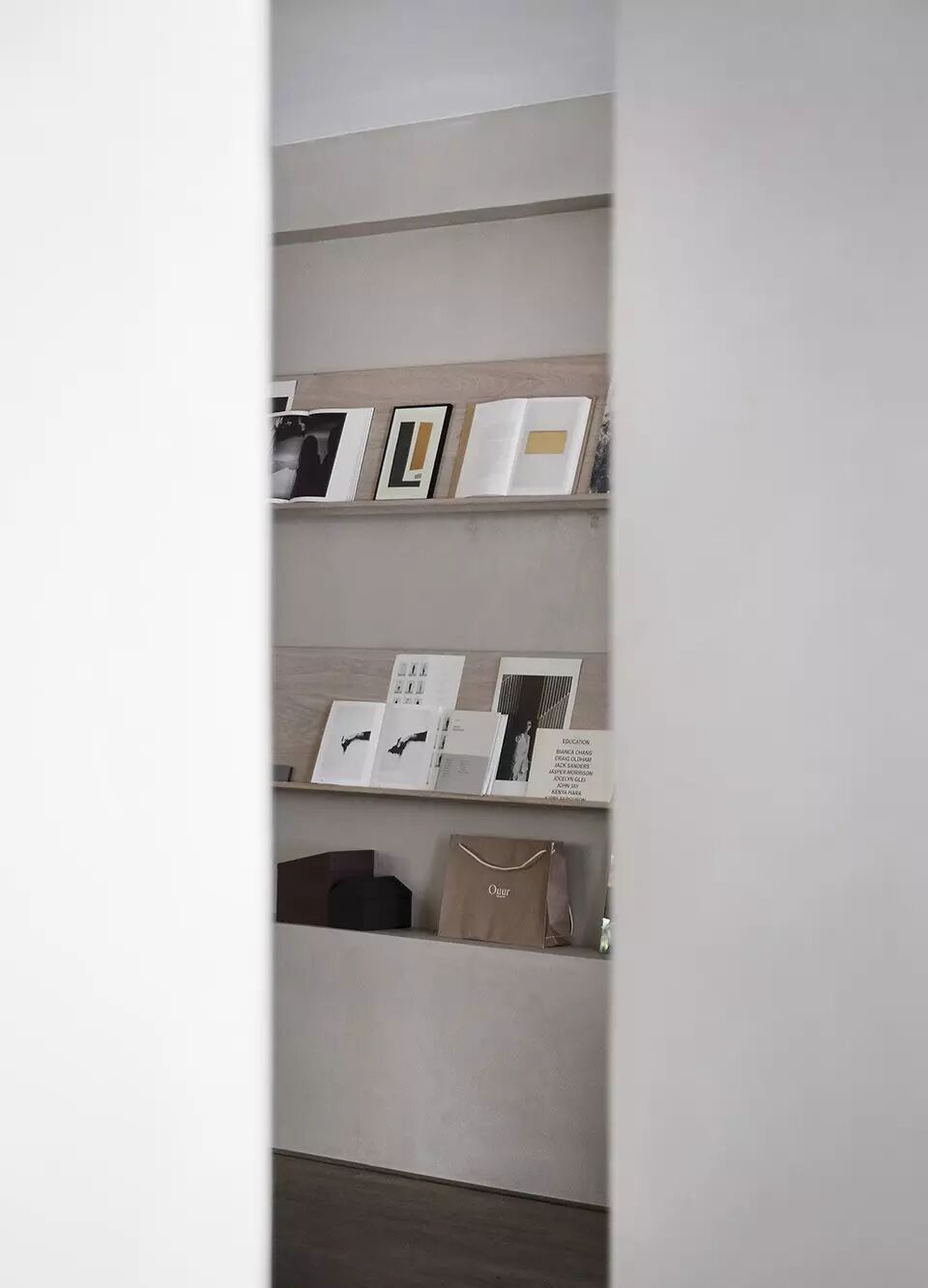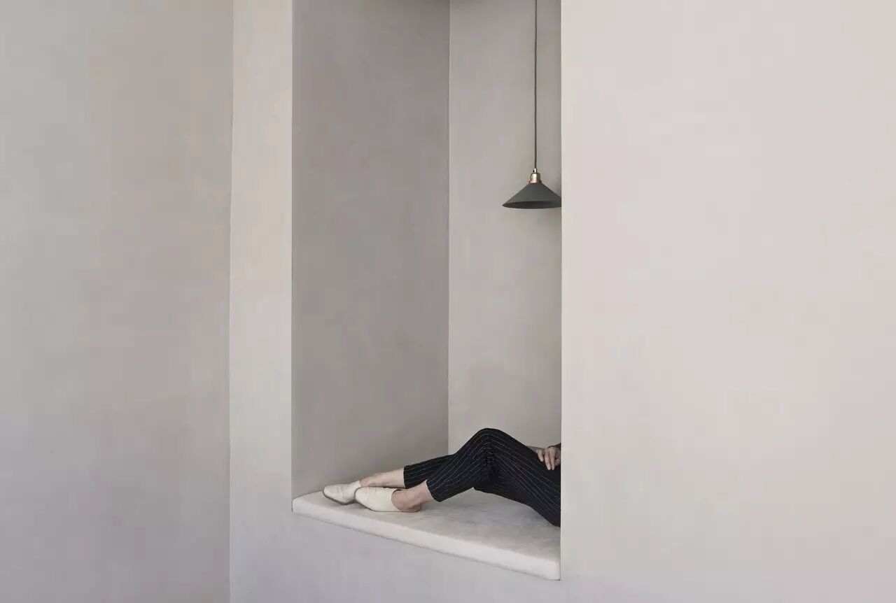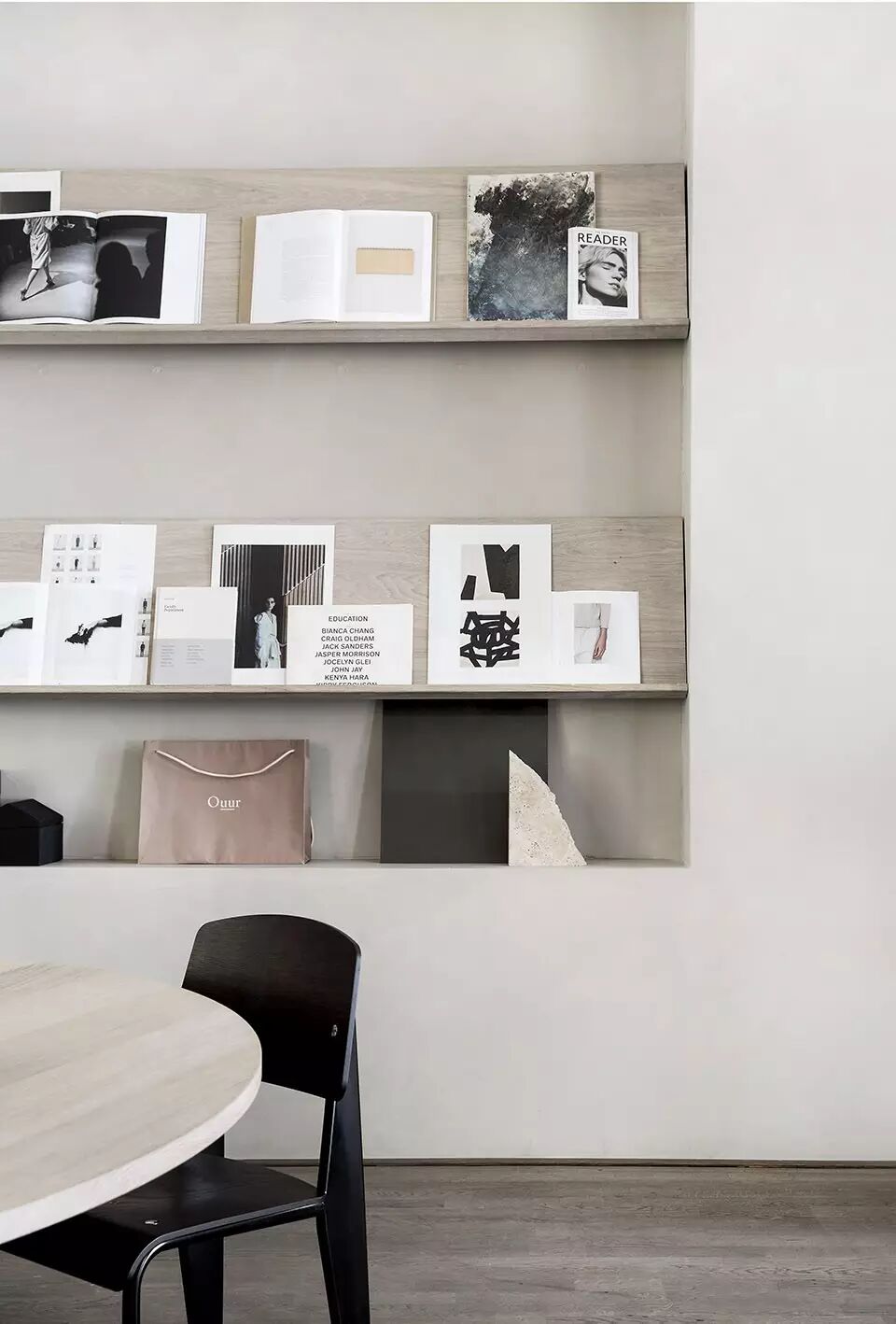 空间的每一处色调,每一个细微的差别,每一寸材料都是设计师精心挑选的结果,以此打造了一个和谐、精致、自然、有触感的适宜Kinfolk慢生活信条的空间。