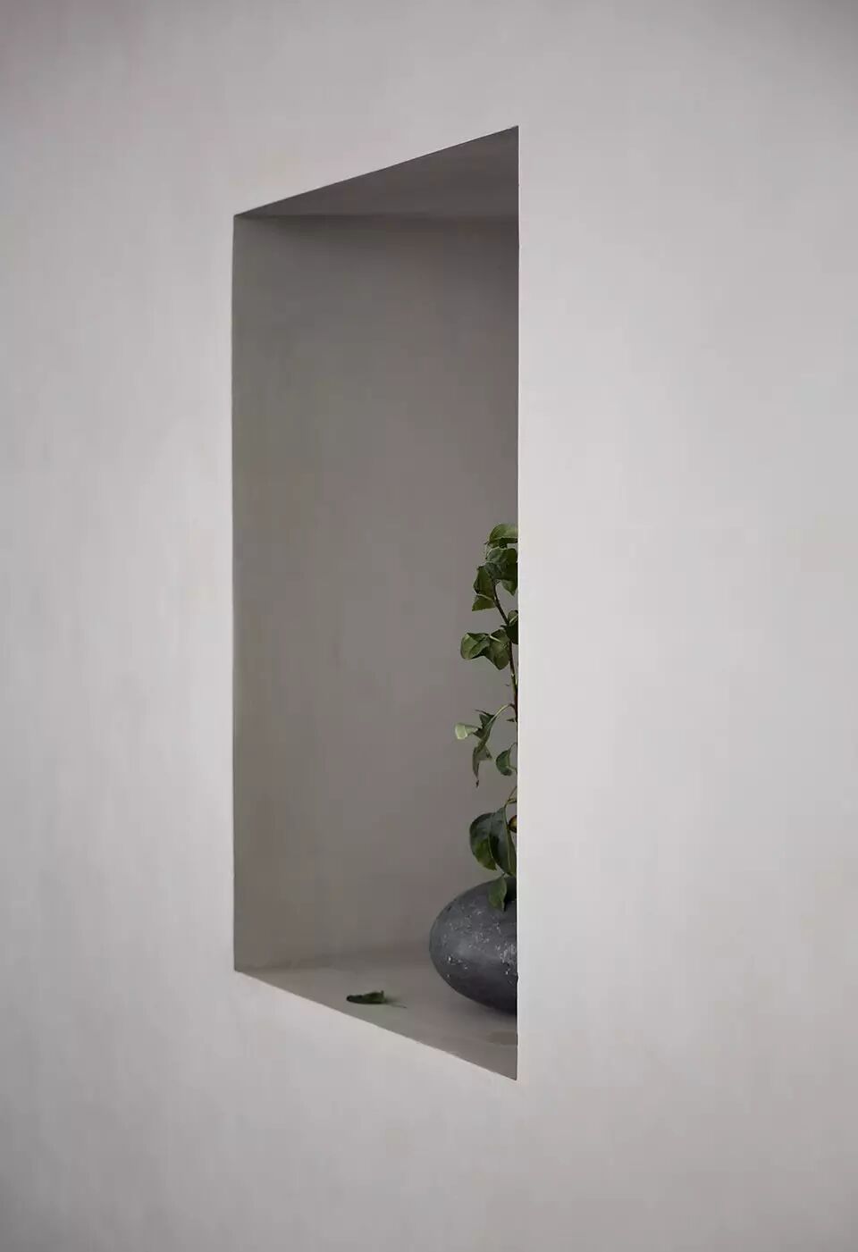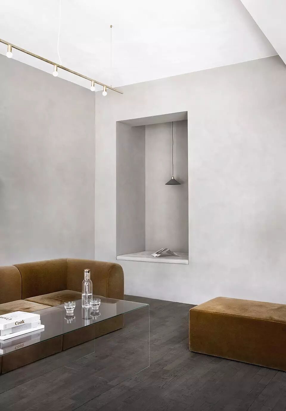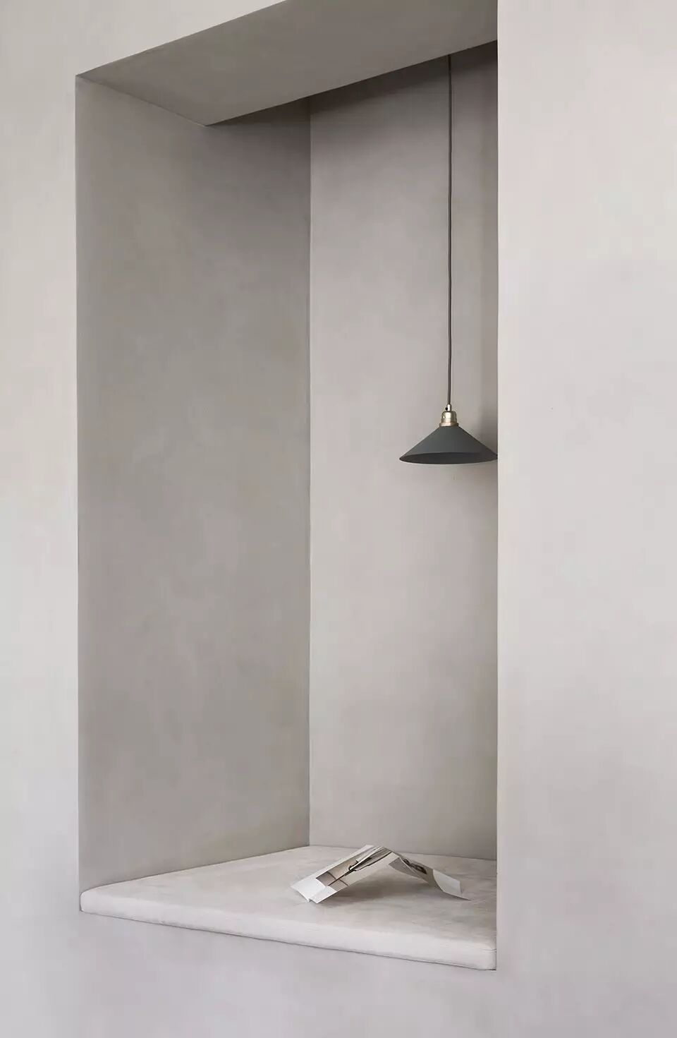 墙壁运用了Kabe色调的灰泥。Kabe是日本语里面用于描述传统日本城堡、寺庙和私人茶室的墙壁所使用的词语。特殊土质的墙体有一种佗寂之美,它也借鉴了中央哥本哈根周边中世纪建筑外立面的质感和颜色。