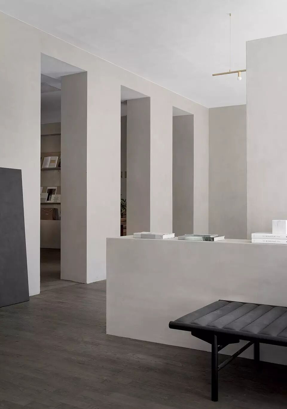 前部分空间明亮,轻快和谐,当人随着一系列的窄门逐渐深入建筑,空间色调变得更暗更私密。狭窄的开口从地板延伸到天花板,扩大了空间的高度感。