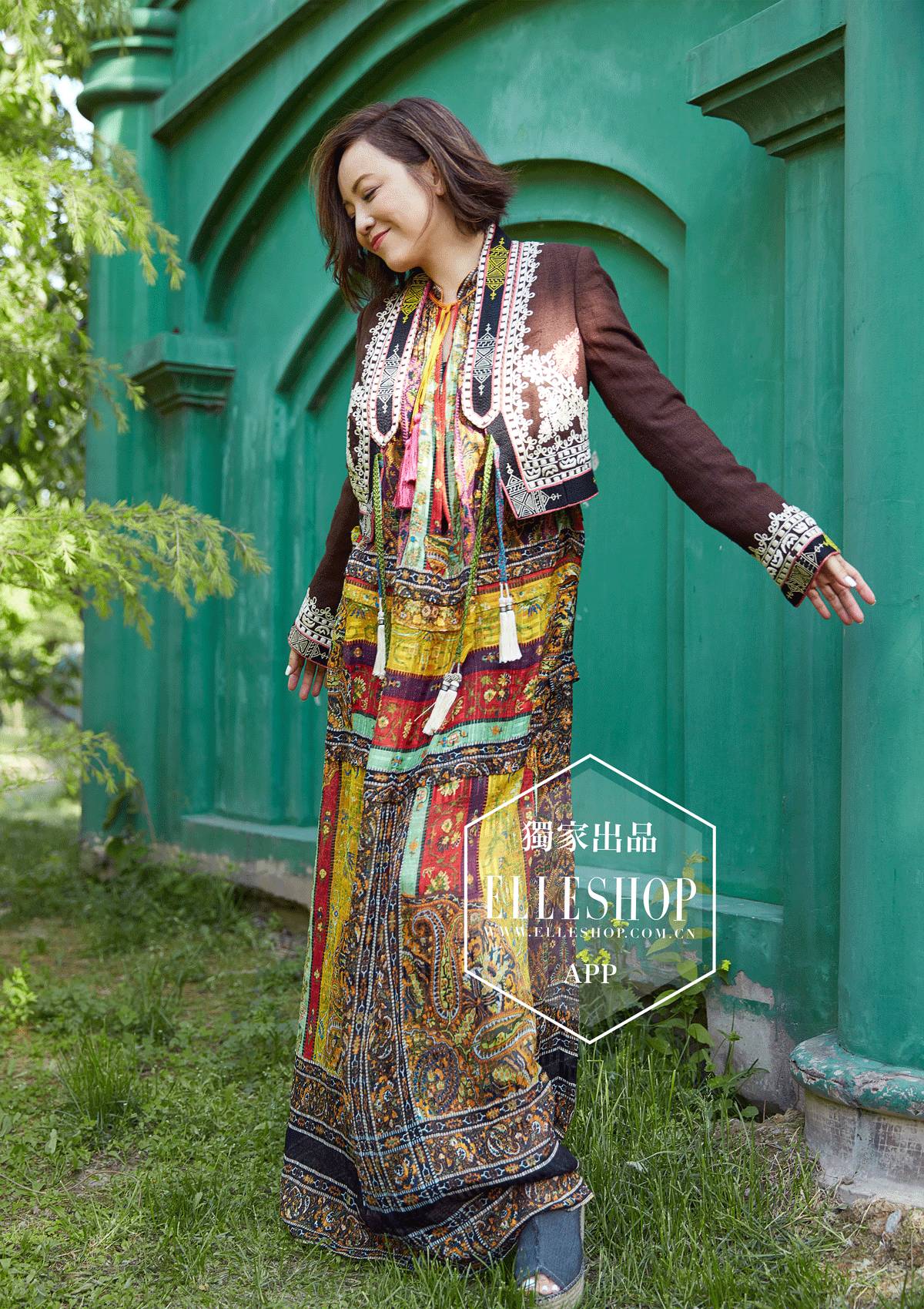 异域民族风长裙,花色大面积衔接与穿插给人带来贴近自然放飞束缚的同时外加上衣腾纹刺绣和流苏点缀也给人精致至美的一面,收放自如。此套ETRO搭配当之夏日首选,为惬意的午后提供了一味风情。