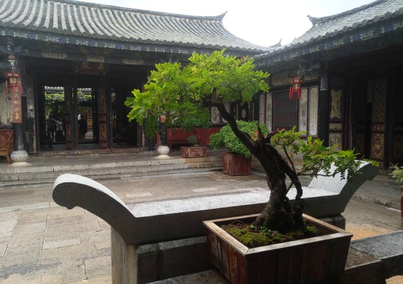 旧地重游,定要好好欣赏,不错过一花一草,不辜负炎炎夏日。进门只见,一株参天的“金刚纂”立于院内,从远处就能感受到其独特的气场。金刚纂属盆栽植物,每年仅生长10多厘米,能长到如此粗壮,枝丫远远高过屋檐,及其不易。据说它其连同戏台旁的四株参天古,均属园子里最珍稀的植物。