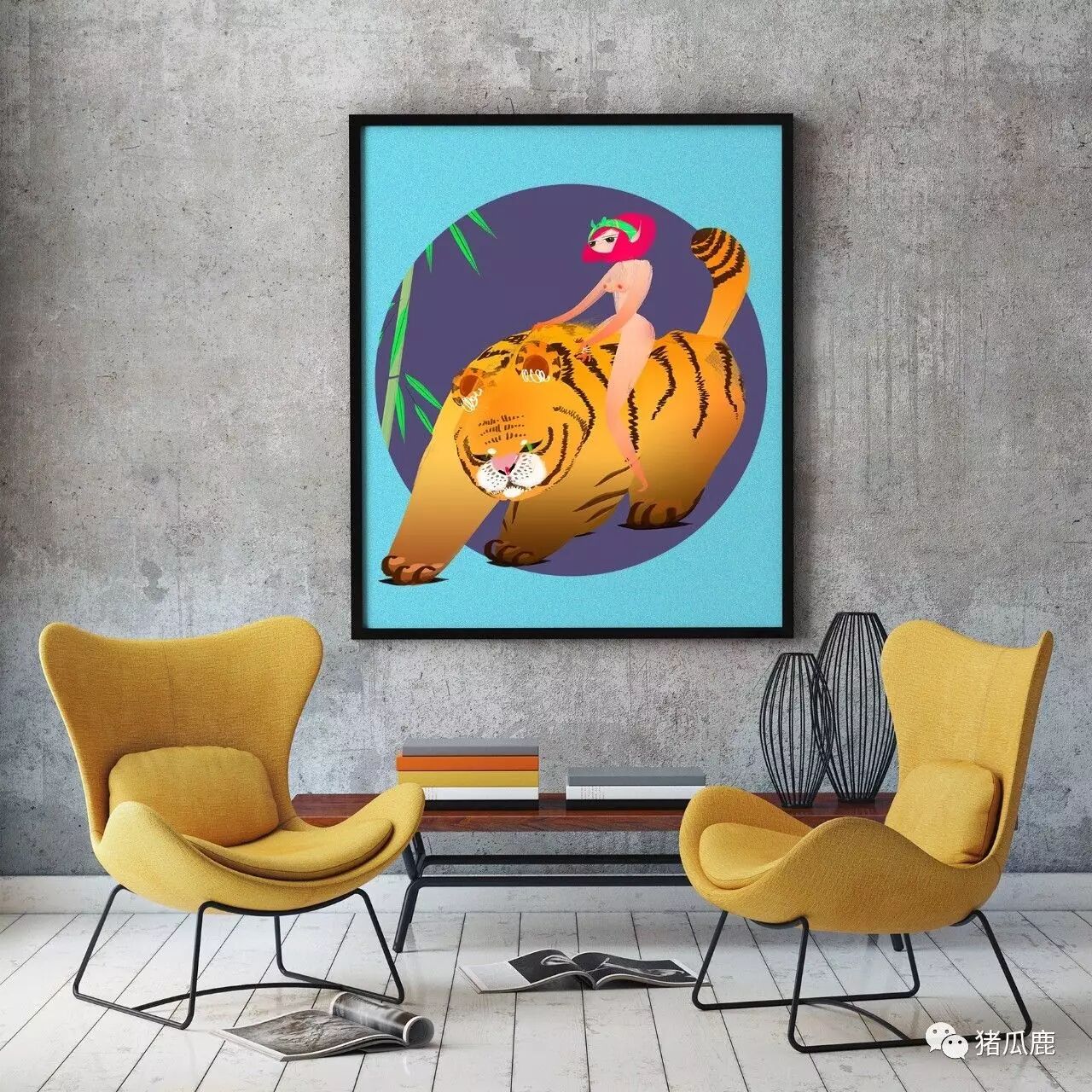 这个姑娘画到现在已经十几年。她代表我自己,潜意识的我渴望了解自己。我叫她sexi,xi是我的字,而sexy这个英文又颠覆了我对吸引力的认知。很久以前以为sexy专指女性的卖弄,周围的女性长辈甚至因为提到这个词而感到羞愧。随着年龄增长,深深感受到普世价值观及男性世界对女性的定义和局限。在法国生活6年,对于法国人我不够自由;对于中国人我过于自由。两种文化的冲突下我既不属于中国更不属于法国。回国后,经济高速发展下的中国女性(包括我),在“传统观念”和“今日观念”中不停调适位置。女性身份和自我认知的交叠,又回到了同样的问题:应该做自己吗?怎样做自己?怎样接受自己?sexi赤身裸体,与四周的动物,植物等充斥着欲望的道具,在艳丽的色彩下看似不激烈的互动。女性自我的释放,对自我的接纳,充满对男权的挑衅。这种挑衅,甚至会激怒某些同性。那些深藏在我们心中的 —— 很想却又惧怕展示的真实自我。