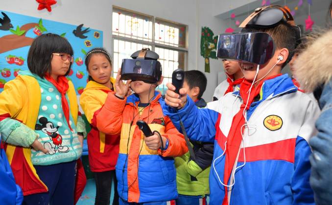 “星星点灯”公益项目中,孩子们在体验VR眼镜