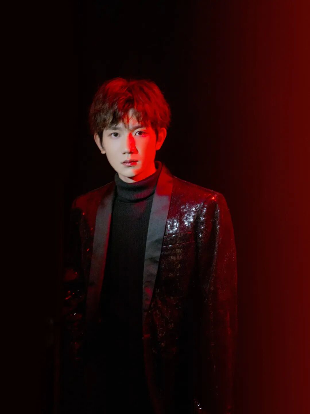 ▼ 王源开工大片,黑色闪光西服搭配黑色高领毛衣,完美打造优雅复古感造型。