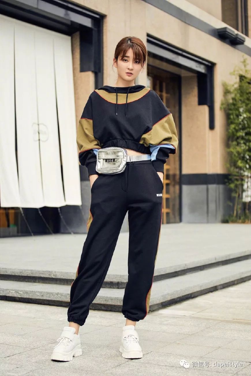 出发米兰时装周观秀的乔欣,身穿一袭深色系运动套装,脚下搭配白色厚底鞋,一身经典黑白配穿搭可以说是十分利落潇洒。同时,乔欣又在腰间佩戴了一个银色腰包,无形中也为整体的运动造型增添了几分时尚气息。