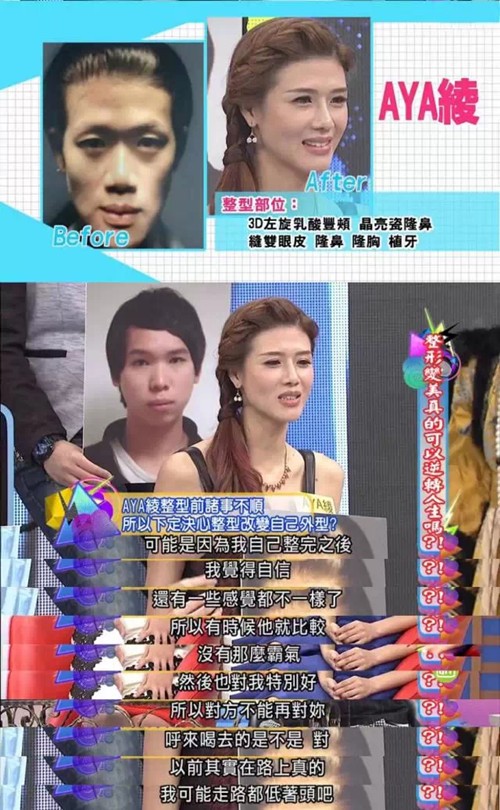在这一期康熙来了中最大的爆点莫过于AYA,她在节目中自曝微整形前自己和丈夫已经到了协议离婚的地步,微整形后自己开始变得更加自信!并成功挽回一段婚姻,现在已是两个孩子的母亲。