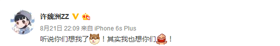 好久没有过互动话题了,想听大家说说了,但是不知道说些什么好。每天从后台看着有新来的朋友,每天也有走的人。就是这样,有来的人就会有走的人,感谢一直都在的你们,我们一起喜欢一个叫做许魏洲的男孩子,愿意陪着他一起成长,也让让自己变得更好。