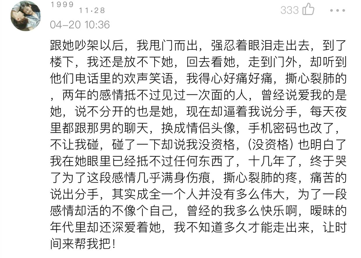 最可恨就是你把曾经的蜜语甜言当成救命良药,死攥着不放手,在心里各种勾画各种畅想跟ta的未来,你不知道吧,ta的未来根本没有你。有ta妈ta爸甚至ta的狗,就是,没有你!