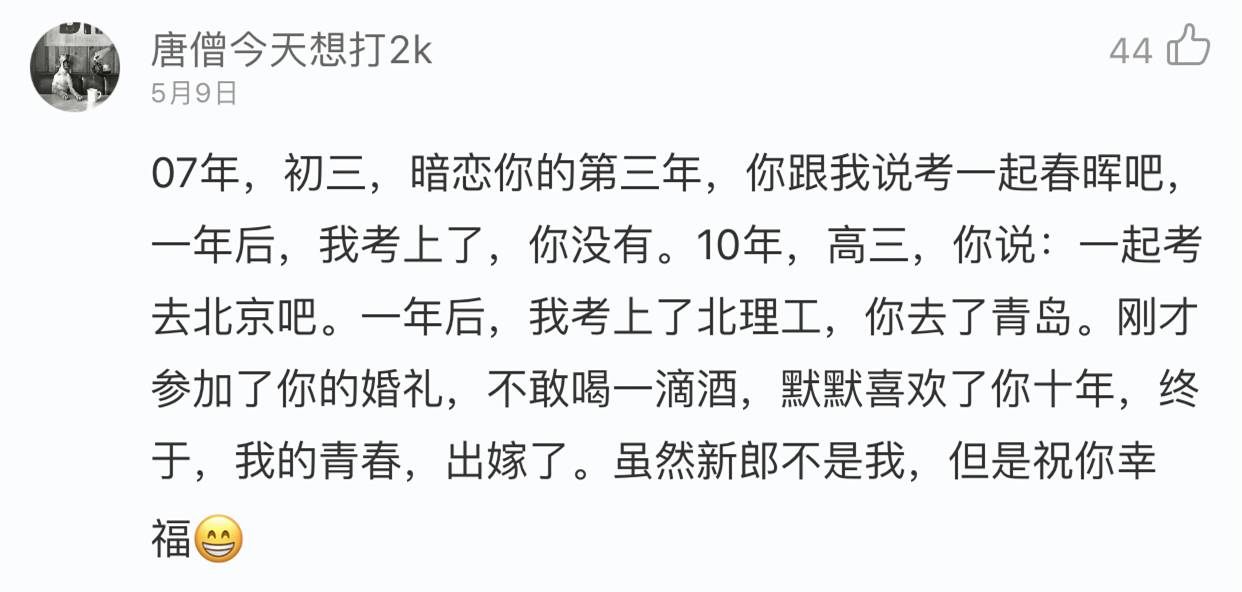 我这个人也真是的,明明人家结婚,我竟然由此切入写了篇悲伤爱情故事合集