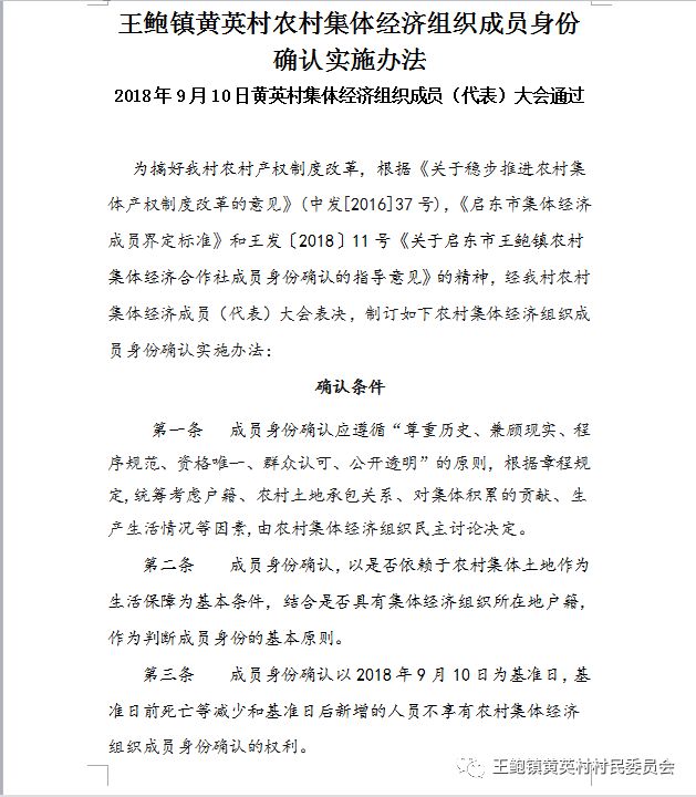 王鲍镇黄英村集体经济组织成员身份确认实施办法 王鲍镇黄英村村民委员会 内地女星 2018-09-10 09:56:09 438 创作不易,用心坚持,欢迎请BaGua喝几杯爱心咖啡!打赏并支持本文 打赏并删除本文 王鲍镇黄英村集体经济组织成员身份确认实施办法 创作不易,用心坚持,欢迎请BaGua喝几杯爱心咖啡!打赏并支持本文 打赏并删除本文 感谢您的支持鼓励,我会继续努力的!文章地址:用户邮箱:打赏金额:USDT 请输入数字点击”去打赏“,即可进行打赏支持本文章哦 黄英 About the Author 王鲍镇黄英村村民委员会 功能介绍:启东市王鲍镇黄英村村级信息发布平台 Related Posts 王鲍镇黄英村集体经济组织成员身份确认实施办法 2018-09-10 09:56:09 黄英村2018年第二季度财务村务公开 2018-07-05 16:41:35 发表评论