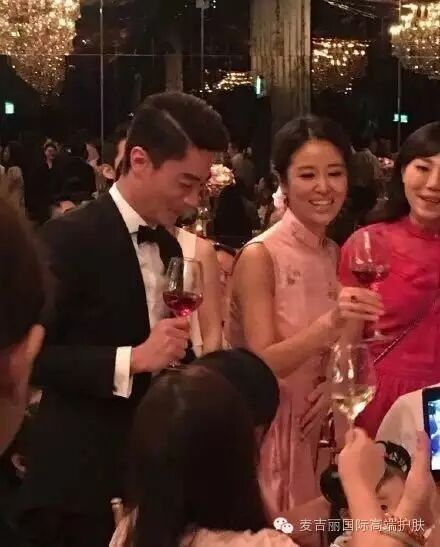 婚礼当天的晚宴上,心如还被拍到摸肚子的照片。看起来也是hin有爱啊!