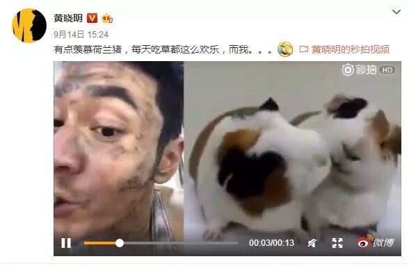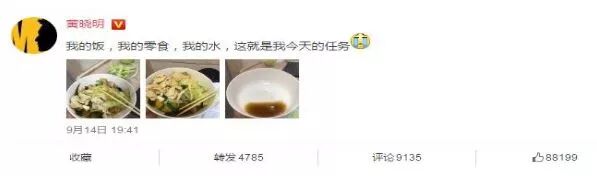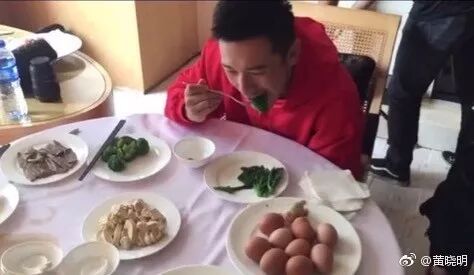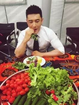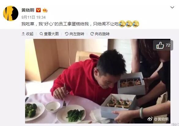随便翻一翻他的微博,黄晓明日常除了吃他的蔬菜大棚蛋糕,他还天天吃“草”。