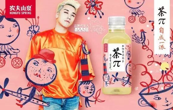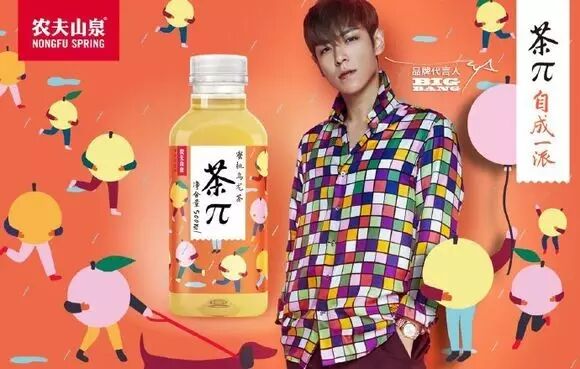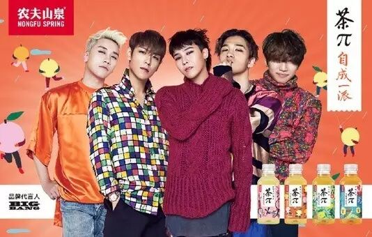 5月11日,连续在今年高调推出3款新品的农夫山泉,再次抛出了一则重磅消息:韩国超人气组合BIGBANG已签约成为其形象代言人,为农夫山泉的新品果味茶饮料——“茶π”代言。据悉,“茶π”是BIGBANG以全员形式代言的首个中国品牌。