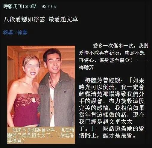 2003年,梅艳芳告别演唱会上,赵文卓从内地飞到香港去看她。那时距离他们分手已有7年。