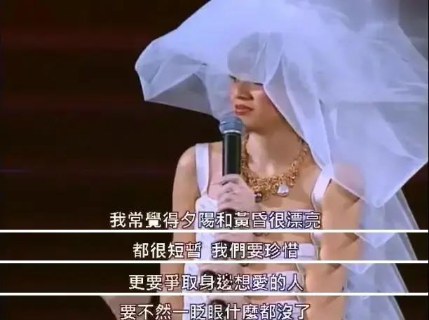 她站在告别演唱会上,披着婚纱,将自己嫁给舞台的一幕,依然历历在目。