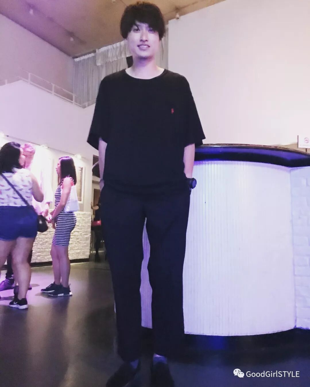 被强抓入镜的这位男生表情很是腼腆,穿着却甚有讲究。看似没有任何花俏的全黑look,左胸口一个迷你红色logo就足够stylish足够french chic。同样是T恤造型,这一套胜在面料及线条的松弛感,加上小哥哥无攻击性的盐系颜,整体非常舒服。不管私下花了多少心思,看起来毫不费力的随性感在光姐看来才是真・时髦男孩应该有的态度。