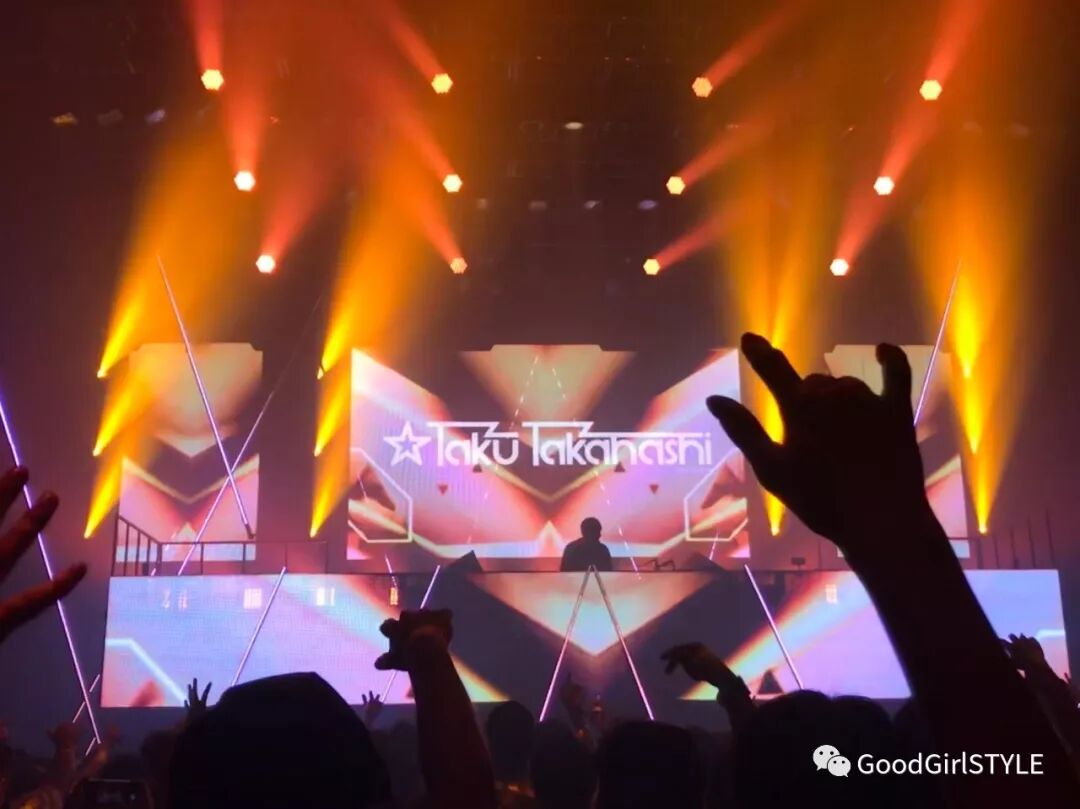 当然既然是电音音乐节,看DJ才是重头戏。午夜12点前后,精彩大秀接踵而来。日本电音组合m-flo的DJ ☆Taku Takahashi是当晚很多人最期待的一位之一。我其实平时不太听电音,但是他的音乐有很强都会感,保持旋律性的同时各种tech也结合得很流畅,让人自然想要跟着音乐投入而不会觉得刺耳。